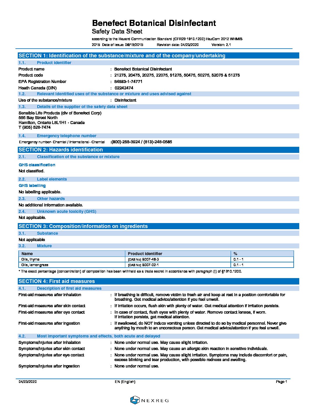 Suitable for nursing homes, hospitals, schools, universities, health clubs, boarding or breeding kennels, sports equipment, food preparation facilities, or any other residential commercial or medical application where high-risk or chemically sensitive individuals may be present