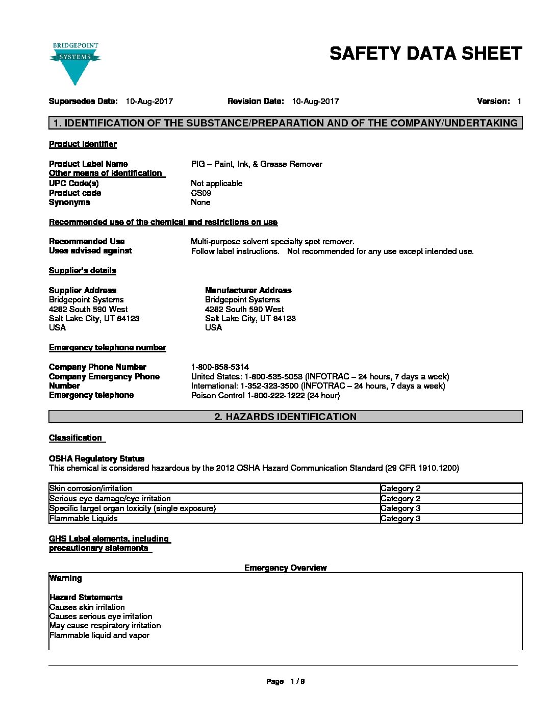 • Takes care of ink, tar, gum, cosmetics, nail polish, marker and transmission fluids easily