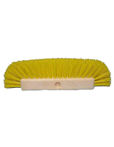 - Stiff crimped yellow plastic bristles are staple set in the foam plastic block with one threaded handle hole