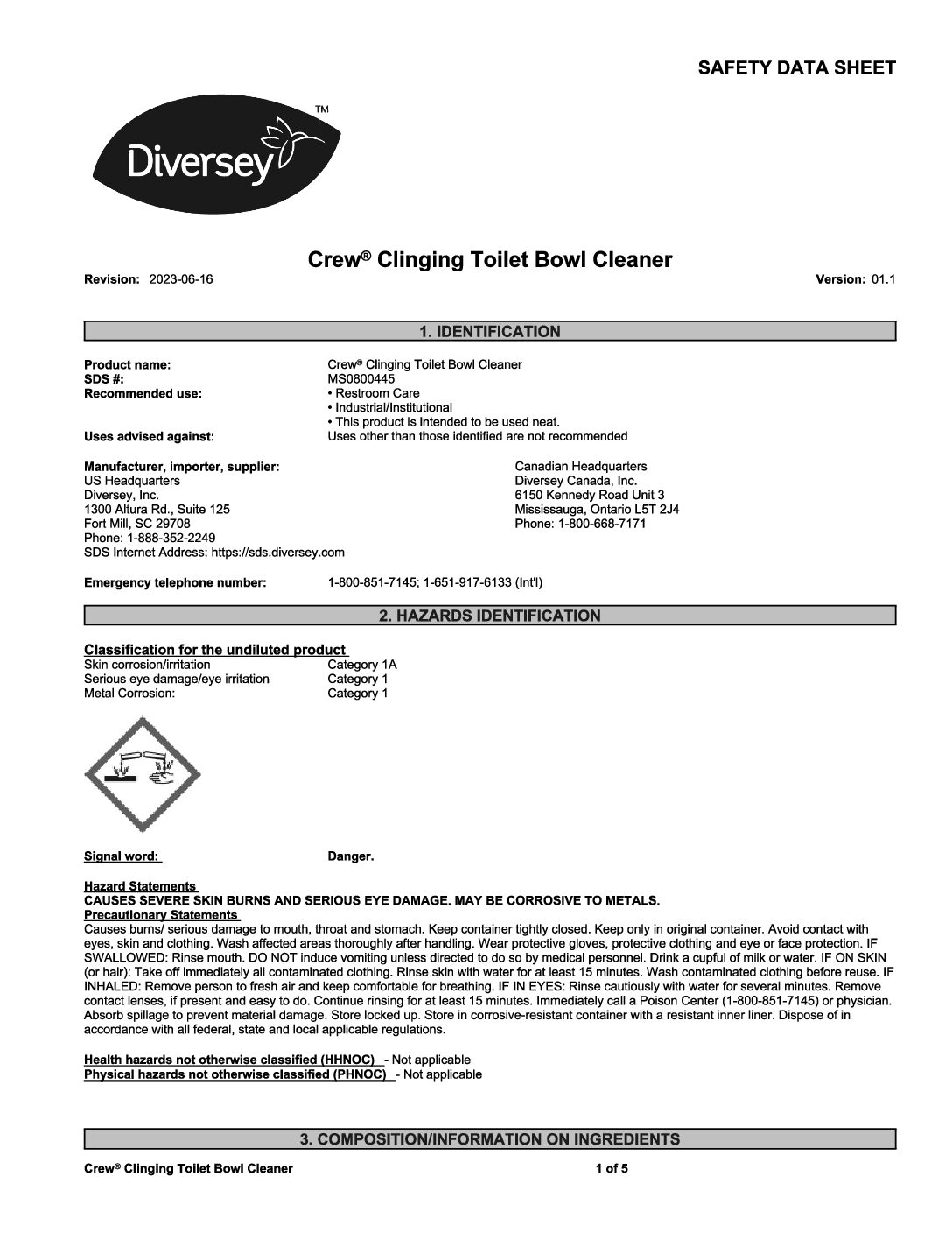 DIVERSEY Crew Clinging Toilet Bowl Cleaner