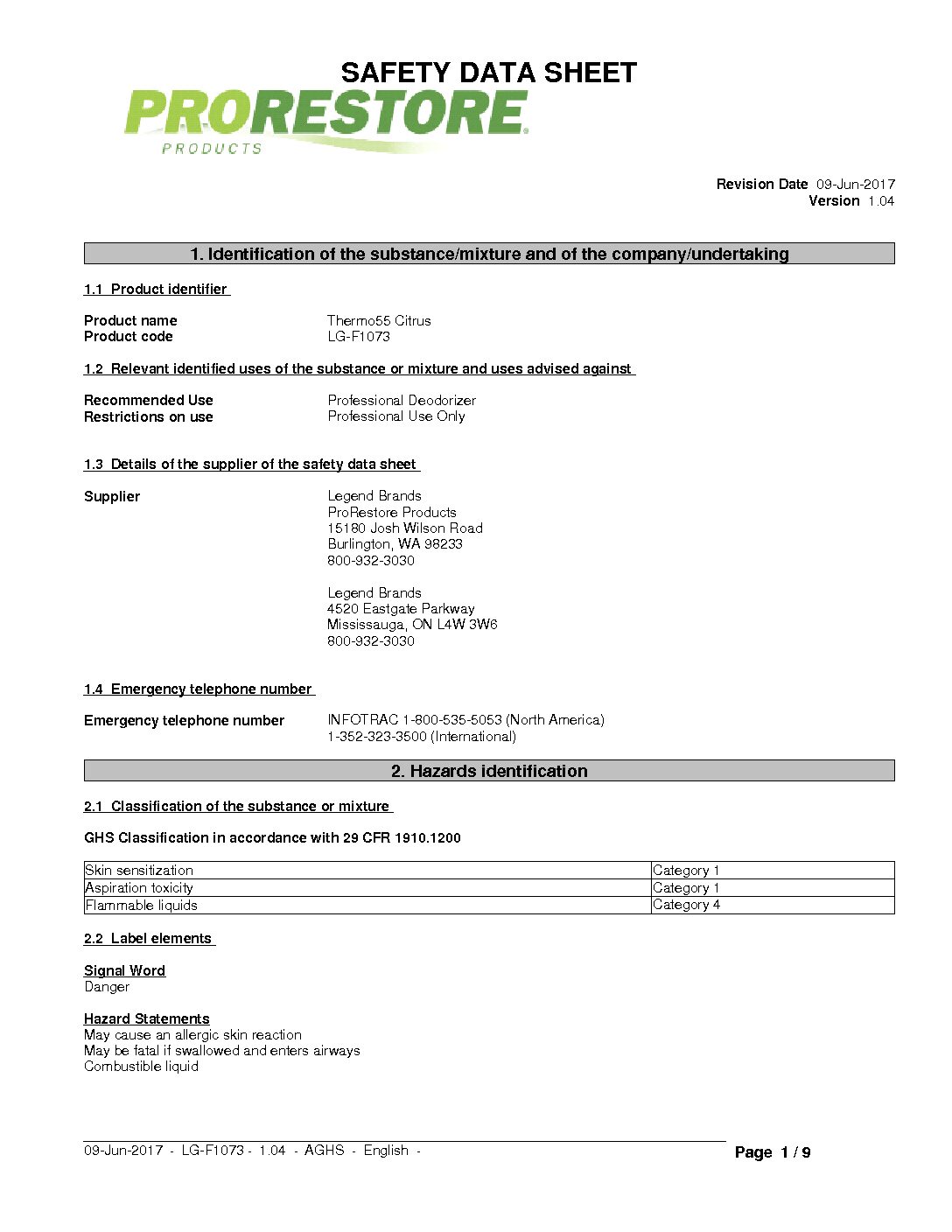 THERMO 55  CITRUS By Odor X / Legend Brands