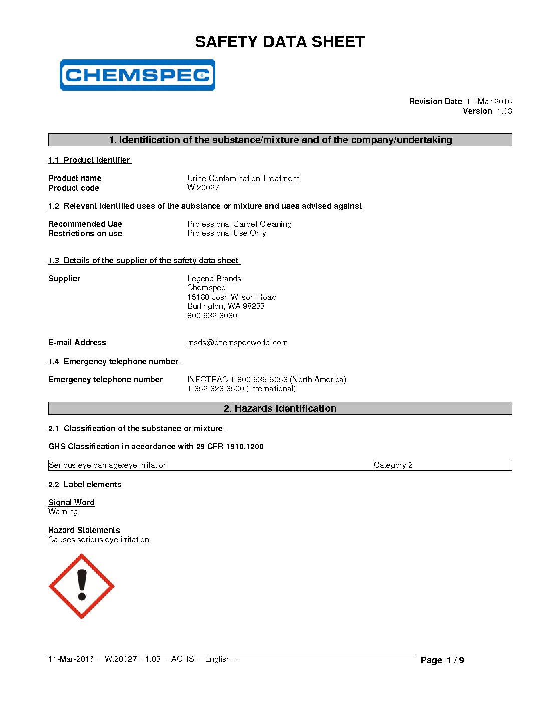 URINE CONTAMINATION TREATMENT By ChemSpec